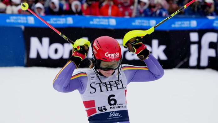 Der Rückstand der gebürtigen Münchnerin betrug in der Endabrechnung 1,57 Sekunden. Emma Aicher (Mahlstetten) schied als Siebte des ersten Durchgangs im entscheidenden Lauf nach ebenfalls zwei Top-10-Ergebnissen im Slalom erstmals im Saisonverlauf aus. „Ich bin unglaublich glücklich mit dem zweiten Durchgang, mit dem ersten war ich wirklich gar nicht zufrieden, es hat überhaupt nicht zusammengepasst“, sagte Dürr, „der zweite Lauf war noch mal der Versuch auf vollen Angriff. Es ist ganz gut ausgegangen. Ein super Wochenende für mich.“ Shiffrin baute durch den Erfolg im US-Bundesstaat Colorado ihre Rekorde weiter aus. Der 67. Slalomsieg bedeutete für die 30-Jährige zugleich ihren insgesamt 104. Erfolg in einem Weltcuprennen.